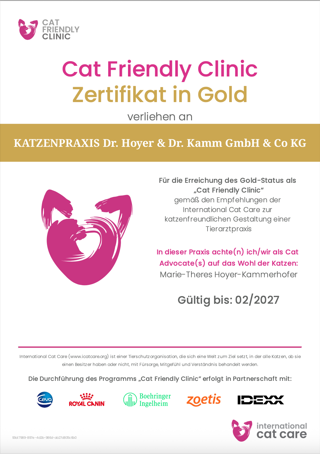 KATZENPRAXIS Goldzertifikat